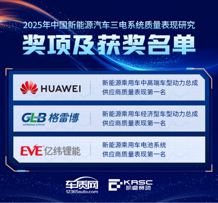 根据《2025年中国新能源汽车三电系统质量表现研究》结果,主办方公布了新能源汽车三电系统质量表现优秀供应商。电池系统供应商质量表现第一名和动力总成供应商质量表现第一名的获奖企业,他们在各自领域提供的产品质量表现优异,精准满足用户对高品质的追求。