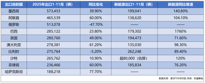 在市场布局上,中国汽车出口正在从“单点依赖”向“全球均衡”转型。曾经连续两年位居榜首的俄罗斯市场,因进口政策收紧与本地产能恢复,出口量大幅下滑至51.3万辆,同比下降47.7%,退居第三位。取而代之的是墨西哥,对墨出口达57.3万辆,同比增长39.9%,跃升为中国汽车第一大出口国。这一转变背后,是中国车企利用USMCA(《美墨加三国协议》)规则,在墨西哥设厂以“曲线入美”,同时满足拉美新兴市场的旺盛需求。阿联酋则以46.5万辆的出口量位居第二,同比激增60.0%,成为中东市场的绝对亮点。
