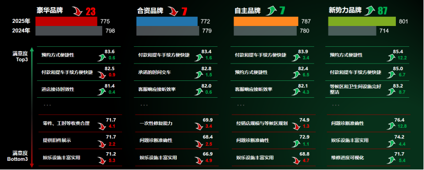 核心发现:2025年乘用车售后服务行业呈稳步提升态势,核心转型方向为从“任务完成”到“体验致胜”,新势力与自主品牌凭借差异化策略表现突出。