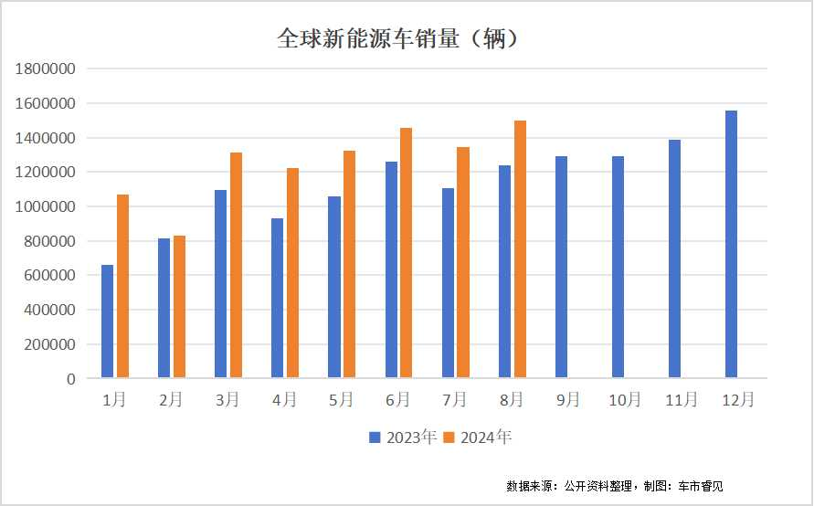 1-8月,全球新能源汽车销量累计达1002.6万辆,占全球汽车销量的19%(纯电动车为12%)。