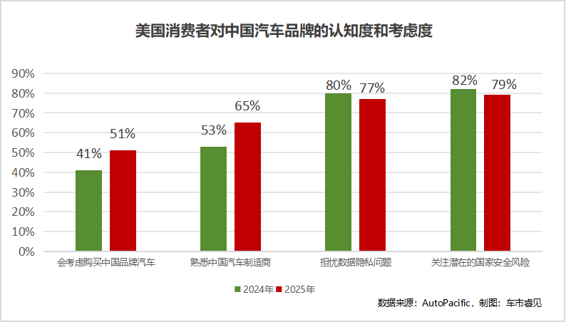 研究机构AutoPacific最新未来属性需求研究(FADS)显示,美国消费者对中国汽车制造商的认知度和购买意愿正呈现出显著且快速的增长。