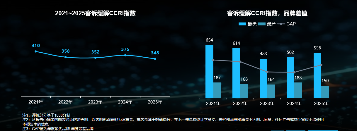 研究发现,2025年乘用车客诉缓解指数(CCRI)行业均值降至近五年最低的343分,用户对品牌的问题解决满意度、复购及推荐意愿均同比下滑。用户跳过官方渠道、直接向车质网投诉意愿上升,行为趋向“施压式”维权。